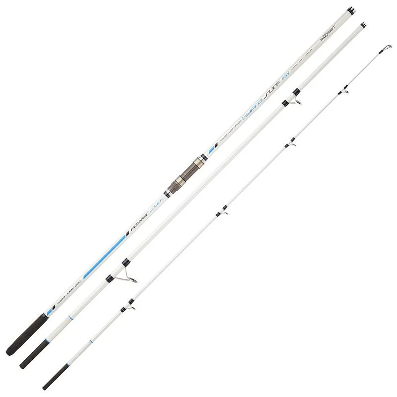 Les cannes surfcasting HYPRA SURF POWER KW possèdent un blank fin en trois éléments en carbone “Technifibre” 24T, un pommeau anti-choc, une poignée ergonomique “soft touch”, un porte-moulinet tubulaire argenté, des anneaux ligaturés anti emmêlement “K Frame” SiC, un scion “Power” pour un maximum de puissance et un étui en tissu.