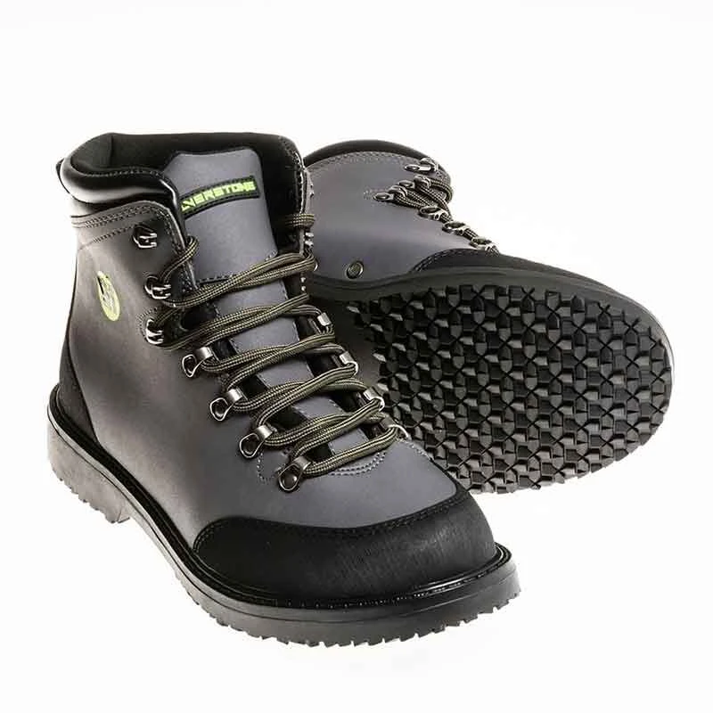 Ces chaussures de wading avec semelles en gomme sont à la fois légères et efficaces pour marcher sur différents substrats avec une adhérence polyvalente. Les semelles en gomme sont munis de crampons assurant une bonne accroche sur la plupart des surfaces. L’avantage de ce type de semmelle est de réduire les risques de propagation d’organismes indésirable d’un coin de pêche à un autre.