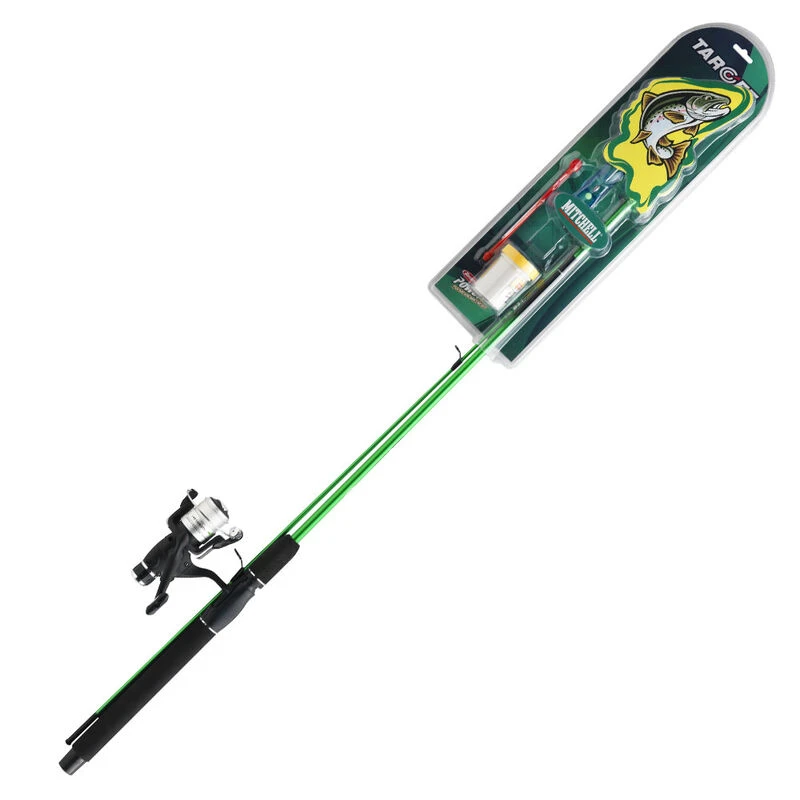 - Composé d’une canne spinning, d’un moulinet frein arrière, d’un pot de pâte à truite, d’une ligne montée et d’un dégorgeoir