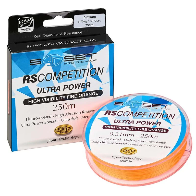 Les monofilaments RS COMPETITION ULTRA POWER HI-VISIBILITY FIRE ORANGE sont réalisés avec des copolymères de nouvelle génération. Spécialement étudiés pour spooler sur les moulinets, ils possèdent un revêtement Fluorocarbone pour une résistance à l’abrasion importante et une glisse parfaite dans les anneaux. Super souple et sans mémoire, le coloris HI-VISIBILITY FIRE ORANGE assurera un contrôle efficace lors des pêches de nuit. De technologie japonaise, les monofilaments RS COMPETITION ULTRA POWER HI-VISIBILITY FIRE ORANGE sont approuvées EFTTA selon les normes ISO 2062.