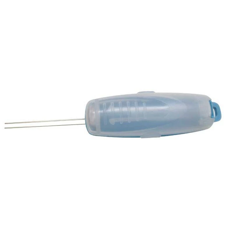 Pack 3 en 1 très pratique comprenant un dévidoir d’élastique à appâts avec bobine de 100 m de fil élastique à ligaturer blanc taille SS (Ø 0.15 mm) + double aiguille à appâts rétractable + 1 cordon de cou.