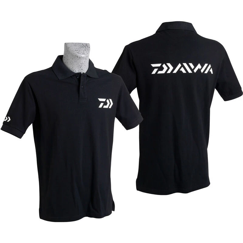 Polo noir 100 % coton, sobre, à utiliser en action de pêche tout comme en ville.