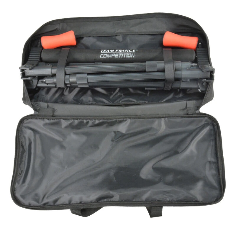 Le tout nouveau rouleau à déboîter TEAM 60 CM est destiné à la compétition et aux amateurs prenant grand soin de leur matériel. Sa grande largeur (60 cm) le rend très pratique d’utilisation. Entièrement recouvert de mousse EVA haute densité, ce rouleau à déboîter assure une protection optimale de vos éléments de canne. Il est doté d’un large rouleau de 50 mm de diamètre et de 2 rouleaux latéraux pour empêcher l’expulsion de votre canne lors des rafales de vent. Ces deux rouleaux latéraux sont repliables pour un rangement plus facile et pour faciliter le transport. Le rouleau pour la pêche au coup TEAM 60CM est muni de 4 pieds télescopiques pour lui assurer une bonne stabilité même sur les terrains les plus escarpés. Les pieds télescopiques permettent un réglage en hauteur de 550 mm en position basse à 1000 mm en position haute. Il est livré dans un sac de transport en toile zippée pour lui assurer une bonne protection lors du transport.