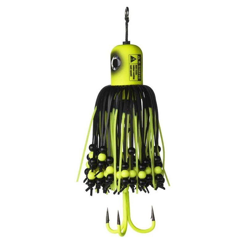 Très efficace sur les silures actifs, ce teaser Madcat A-Static Clonk Teaser dispose d’une jupe en brins de silicone sur lesquels se trouvent des perles colorées. Lors de l’animation, celles-ci s’entrechoqueront à la moindre sollicitation que vous imprimerez. La sonorité ainsi émise saura stimuler l’agressivité des silures et déclenchera des attaques fulgurantes.