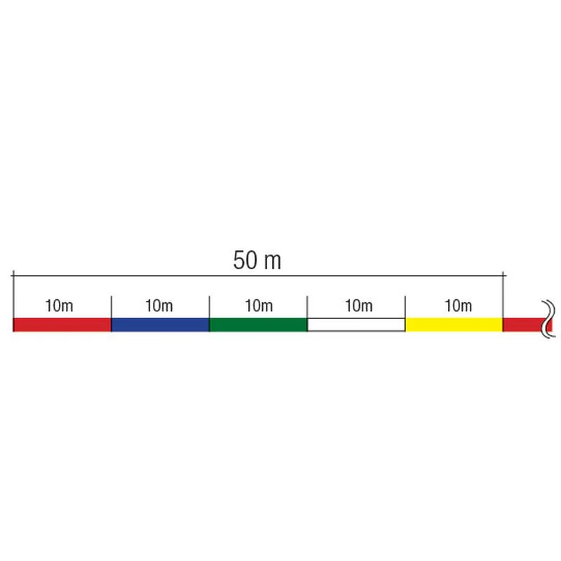 Tresse spéciale jigging avec changement de couleur tous les 10 mètres (5 couleurs : jaune, blanc, vert, bleu et rouge) permettant de localiser la couche d’eau où évoluent les poissons.