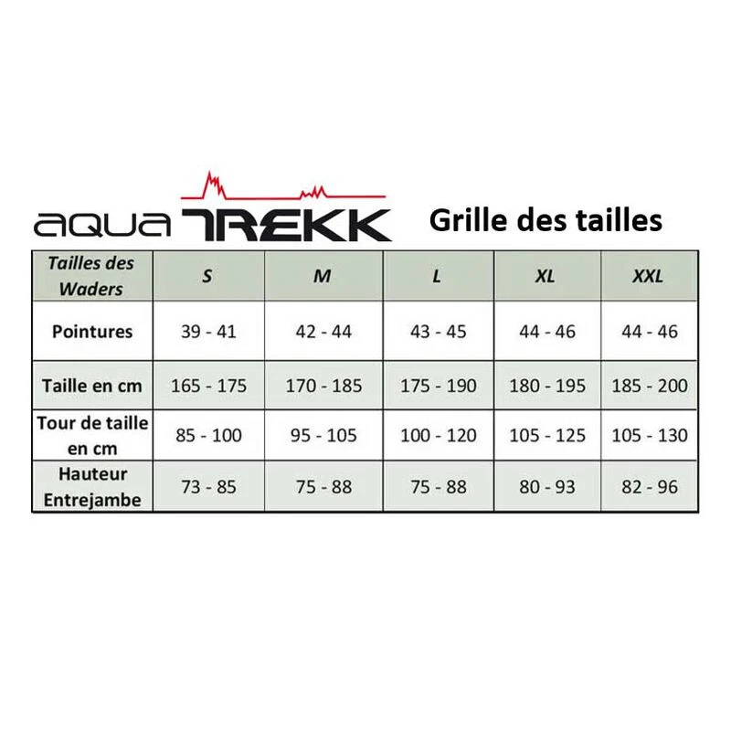 Equipé de chaussons néoprène et de guêtres intégrées ce wader Aquatrekk s’adaptera parfaitement à une utilisation en rivière avec des chaussures de wading. Les guêtres protègent parfaitement les chaussures de l’intrusion de sable et de gravier, des crochets à lacets sont prévus pour maintenir les guêtre en place.